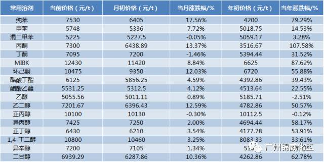 涂料原材料價(jià)格上漲參考表(常用溶劑類(lèi))——12月12日