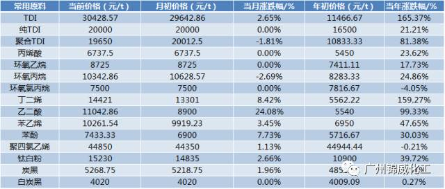 涂料原材料價(jià)格上漲參考表(常用原料類(lèi))——12月12日